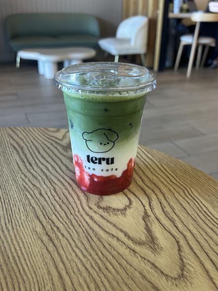 As a muted brown building with many other identical ones surrounding it, there was nothing eye-catching about this restaurant. There were no grand opening fliers or bright colors; in fact, I had only heard about Teru Tea Cafe reopening and separating from the Feng Cha franchise through word of mouth and social media advertising. With new menu items, the cafe is now rebranded as an independently owned business. As someone who had tried the old cafe and enjoyed it, I was a bit sad to see that it had closed, but I was still excited to see what new items would be available. Previously, Feng Cha focused mainly on boba drinks, but Teru Tea Cafe has shifted its marketing to cater to matcha lovers, adding an entirely new section on its menu for customers to order from.